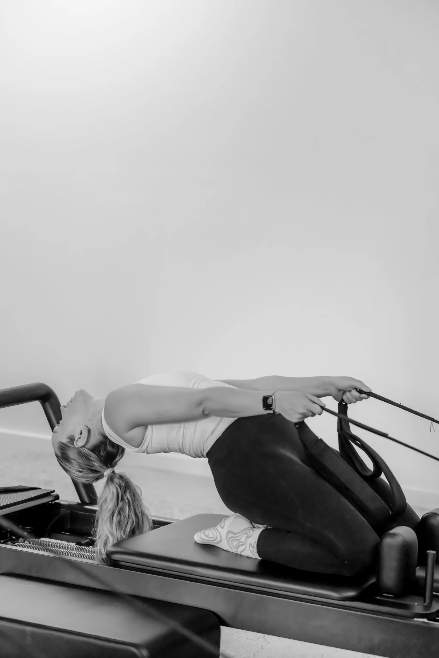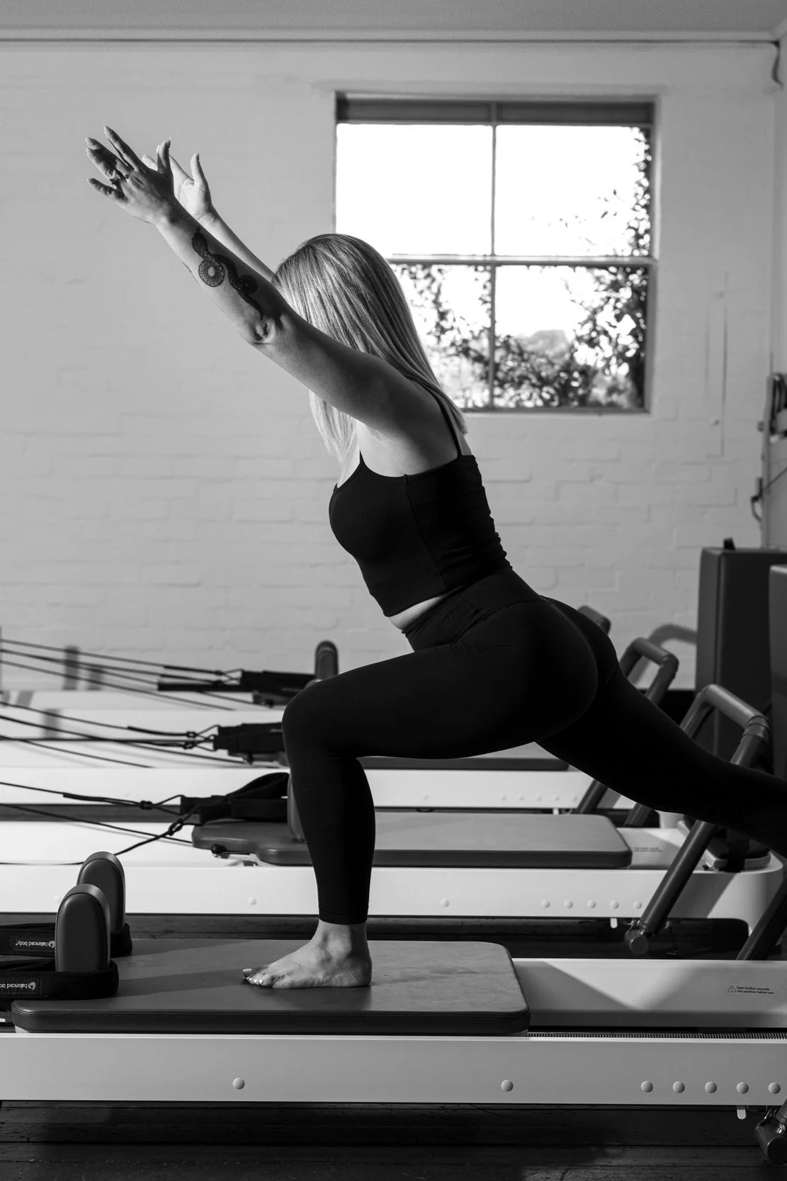 An intense, full-body workout on the Reformer, combining strength, endurance, and flexibility through dynamic, controlled movements and core engagement.